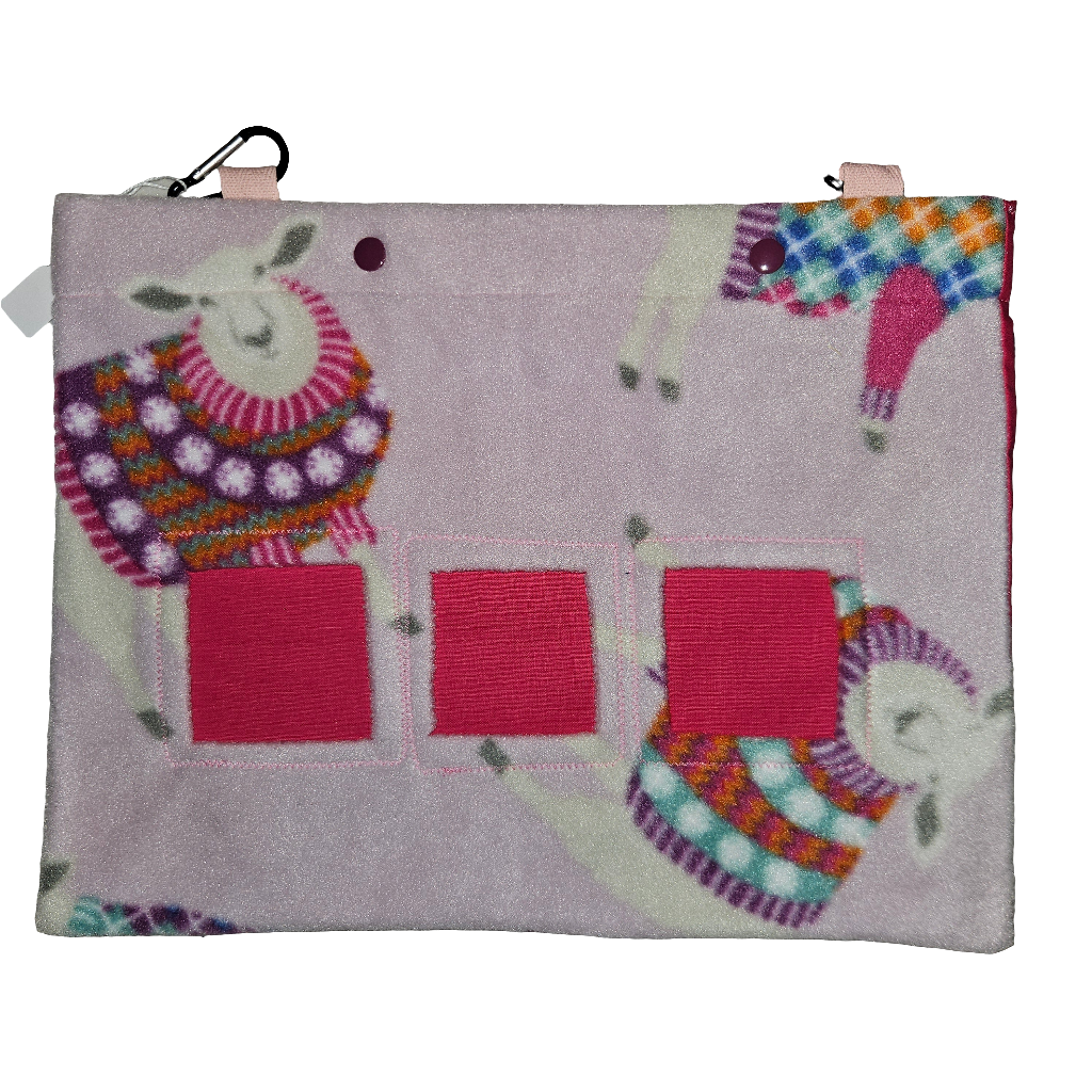 Approximately 35cm x 27cm. Two clips at the top to make it easy to attach to cage